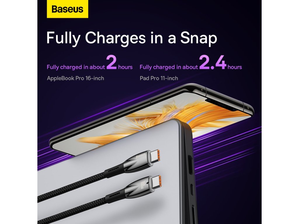 Tento kabel z Baseus Glimmer Series umožňuje rychlé nabíjení a přenos dat, což je ideální pro zařízení jako jsou smartphony, tablety a notebooky, včetně MacBooků.Kabel nabízí rychlost přenosu dat 480 Mb/s a podporuje zařízení s až 100W Power Delivery (PD), což znamená rychlé a efektivní nabíjení vašich zařízení.