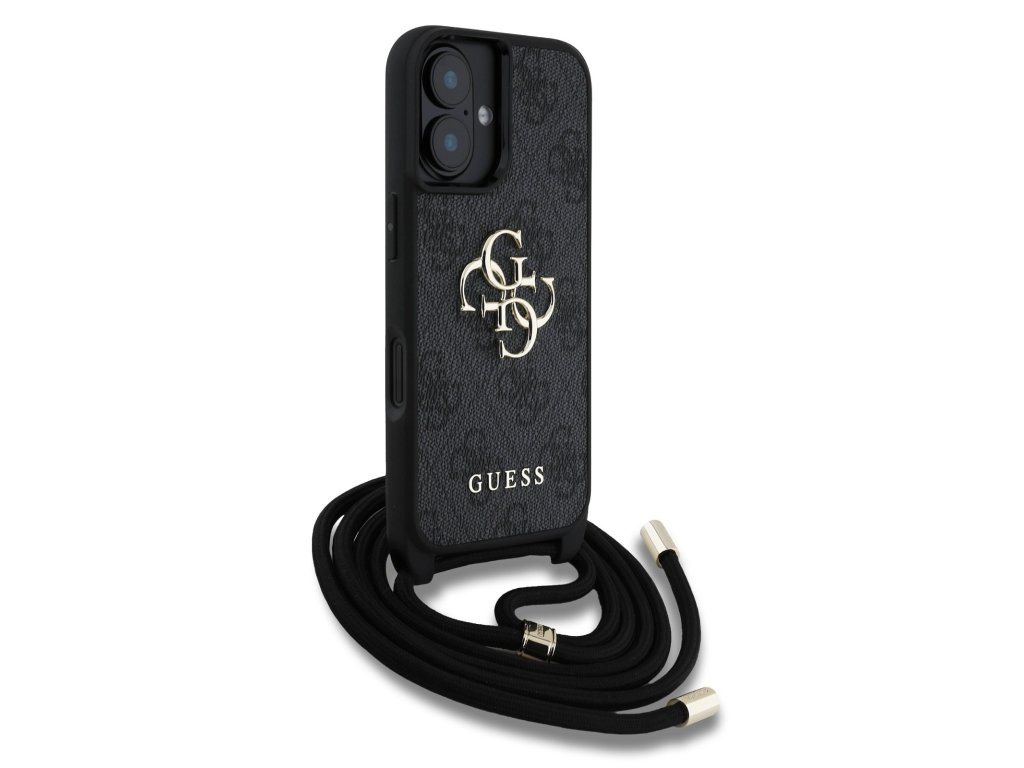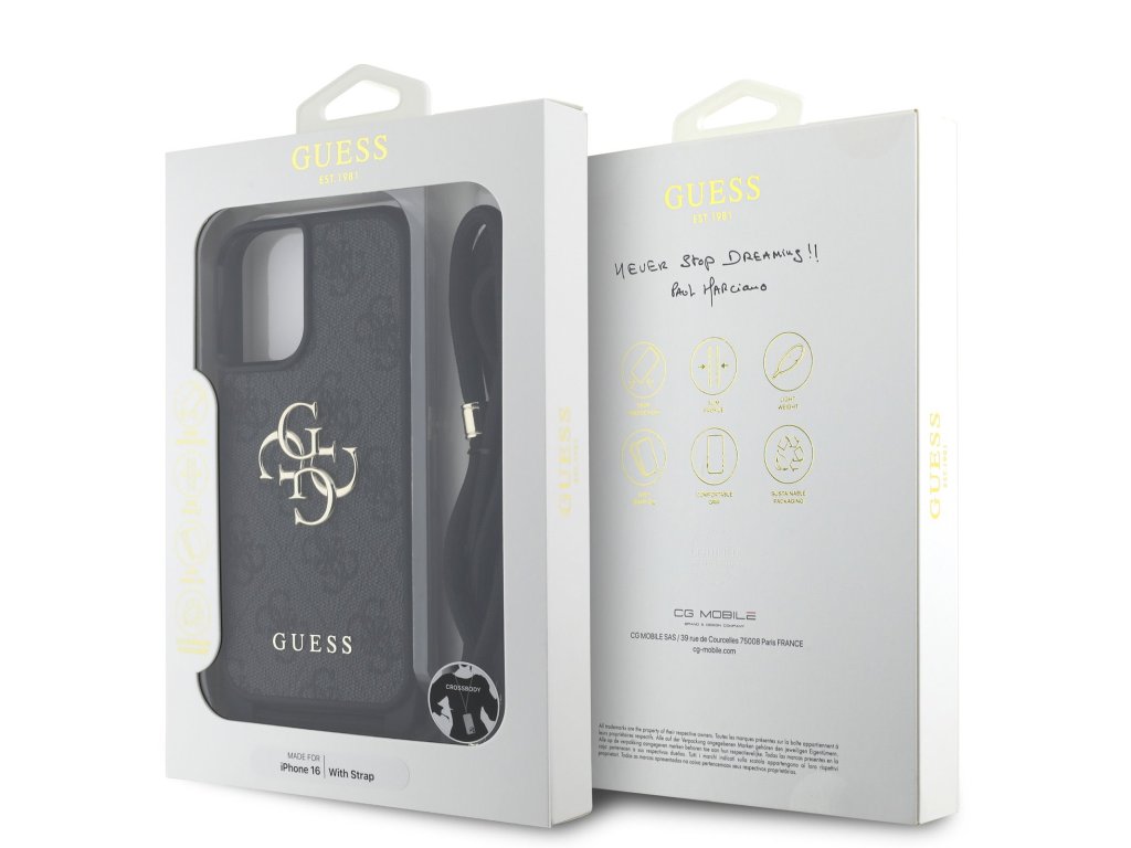 Guess PU 4G Metal Logo Crossbody Popruh Zadní Kryt pro iPhone 16 Black