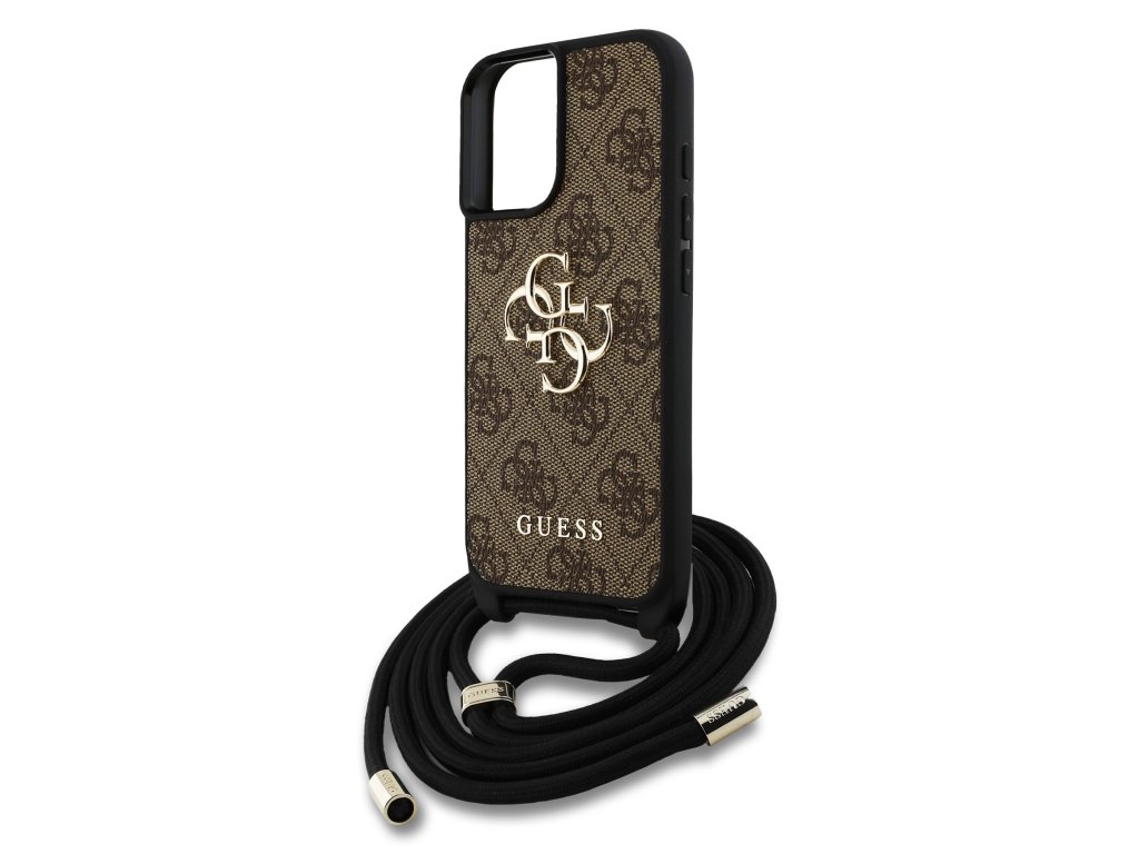 Guess PU 4G Metal Logo Crossbody Popruh Zadní Kryt pro iPhone 16 Brown