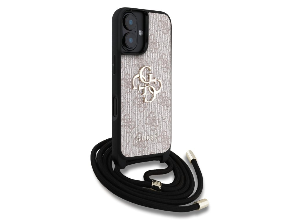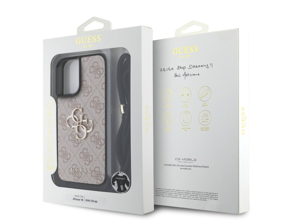 Guess PU 4G Metal Logo Crossbody Popruh Zadní Kryt pro iPhone 16 Pink