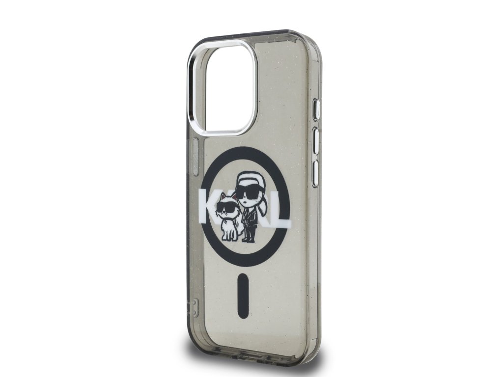 Karl Lagerfeld IML Glitter Karl and Choupette Sketch MagSafe Zadní Kryt pro iPhone 15 Pro Max Black