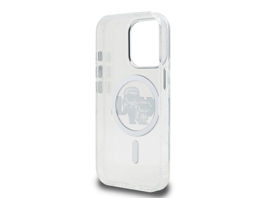 Karl Lagerfeld IML Glitter Karl and Choupette Sketch MagSafe Zadní Kryt pro iPhone 15 Pro Max Transparent