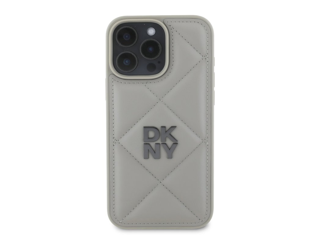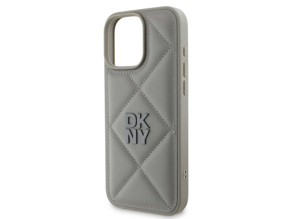 DKNY PU Leather Quilted Stack Logo Zadní Kryt pro iPhone 16 Pro Max Grey