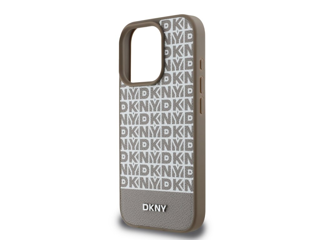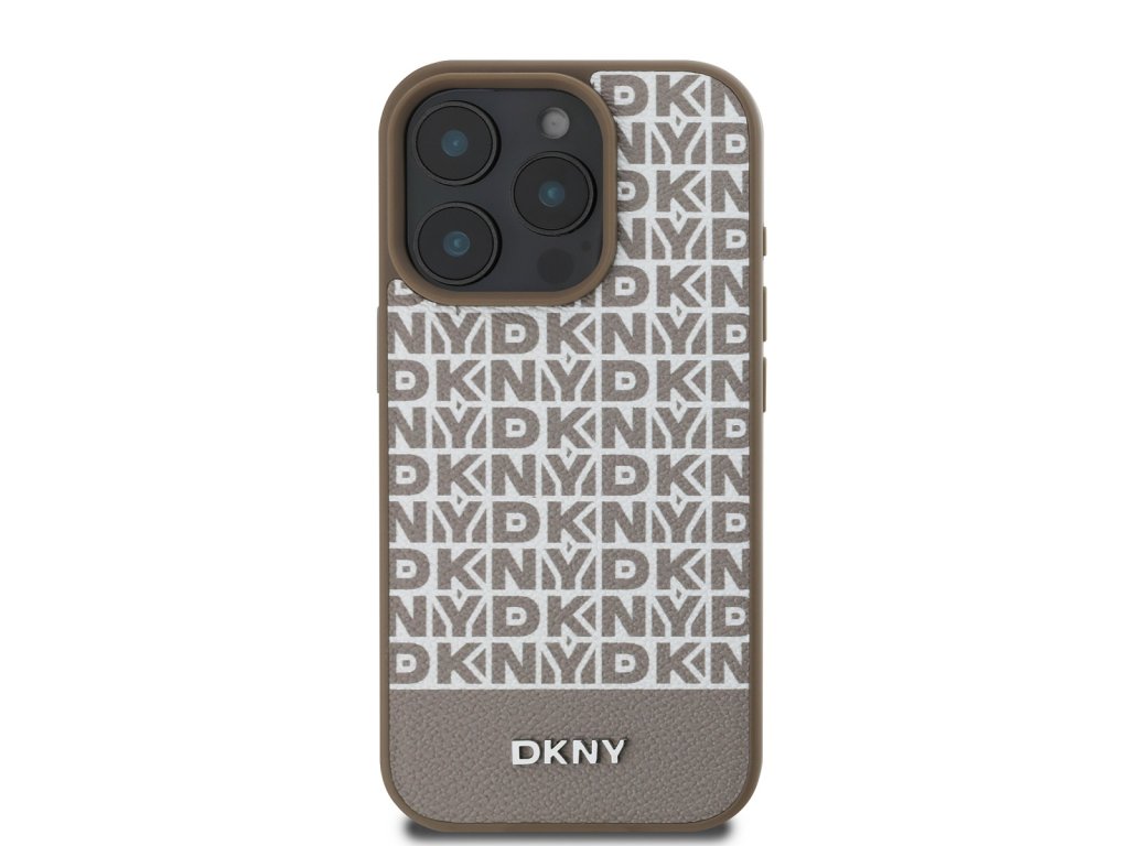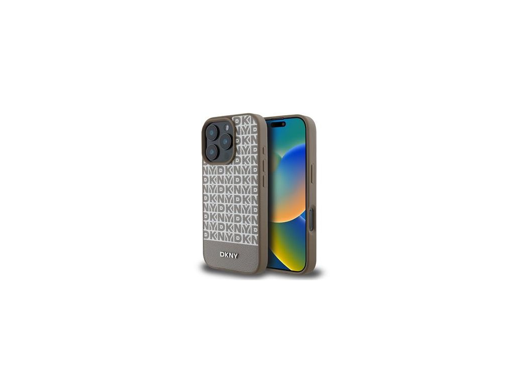 DKNY PU Leather Repeat Pattern Bottom Stripe MagSafe Zadní Kryt pro iPhone 16 Pro Brown
