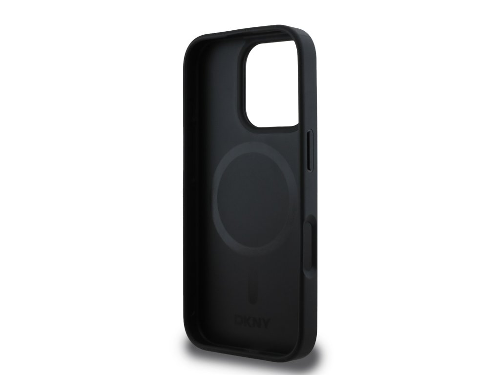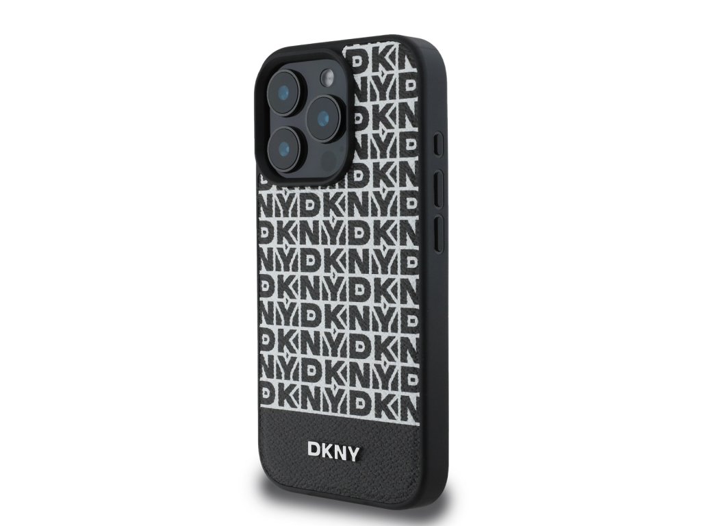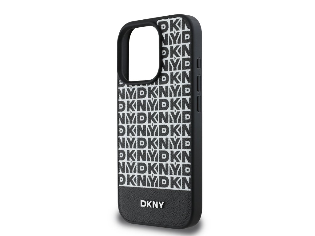 DKNY PU Leather Repeat Pattern Bottom Stripe MagSafe Zadní Kryt pro iPhone 16 Pro Max Black