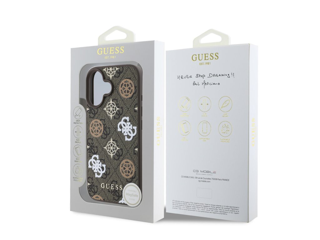 Guess PU 4G Peony MagSafe zadní kryt je dokonalý doplněk pro váš telefon i váš outfit, který kombinuje funkčnost a styl v jednom.Je vyrobený z lehkého a odolného PU materiálu a nabízí skvělou ochranu telefonu i pohodlí při používání.