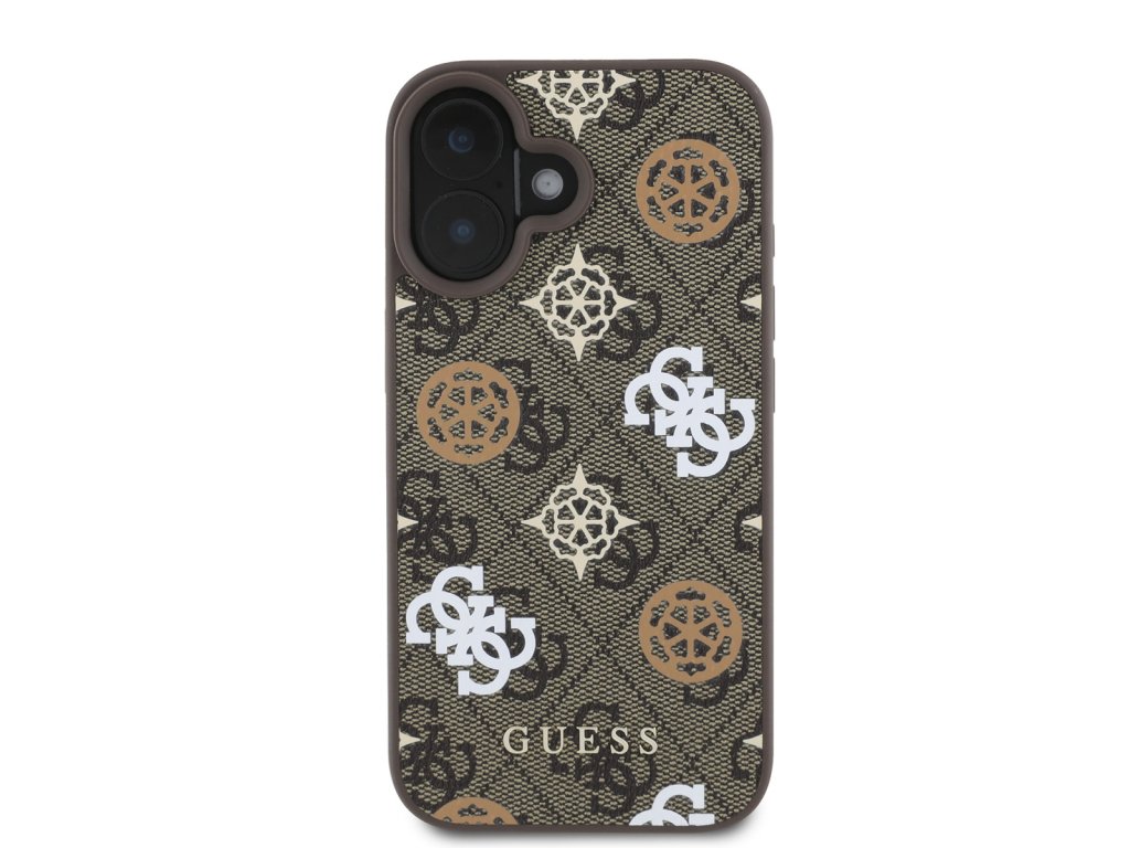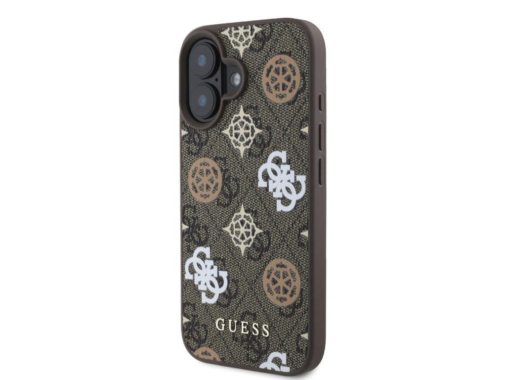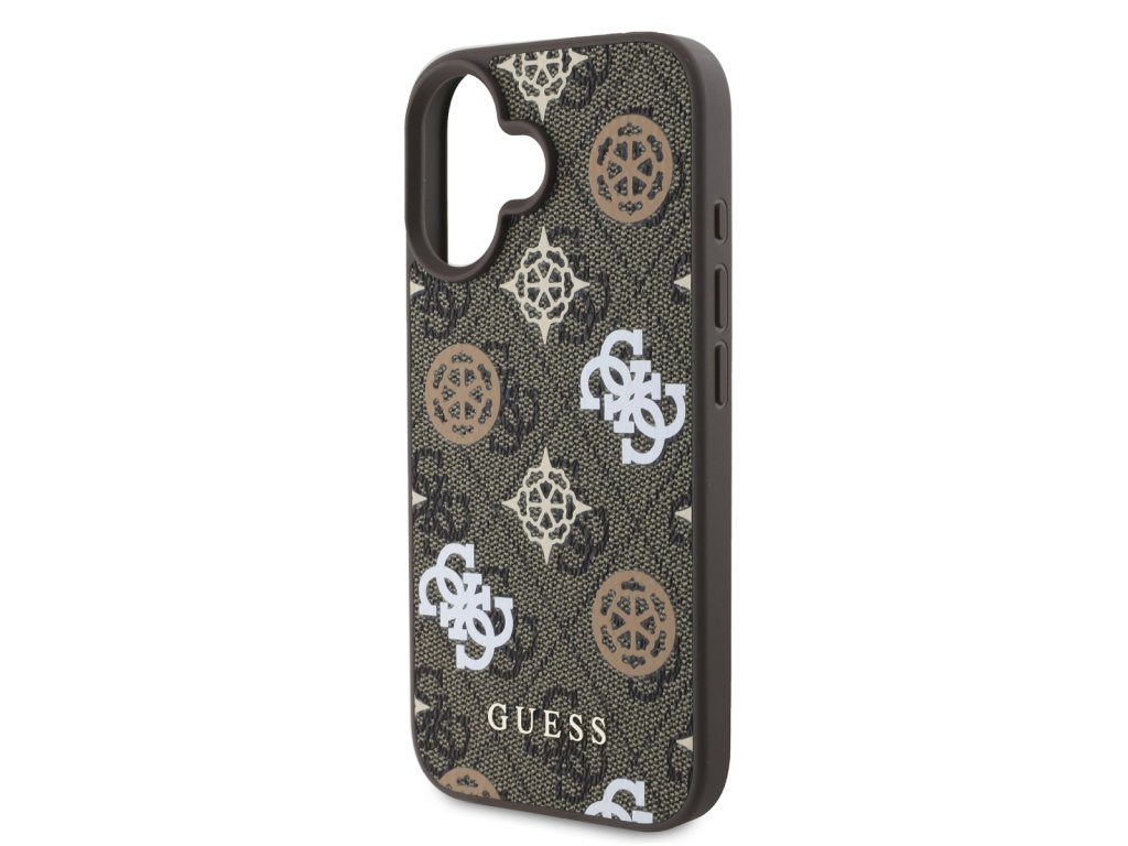 Guess PU 4G Peony MagSafe Zadní Kryt pro iPhone 16 Brown