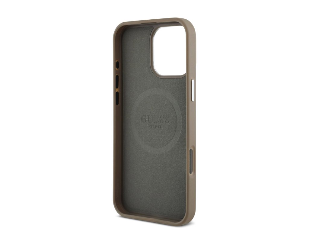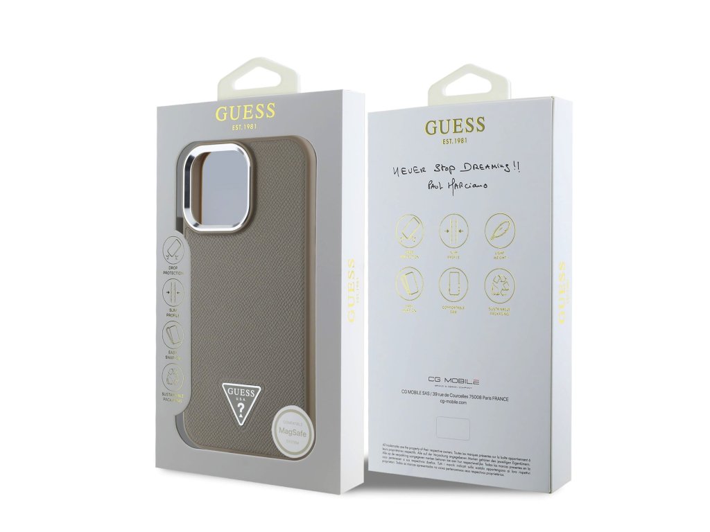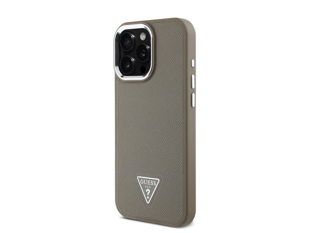 Guess PU Grained Triangle Logo MagSafe Zadní Kryt pro iPhone 16 Pro Max Brown