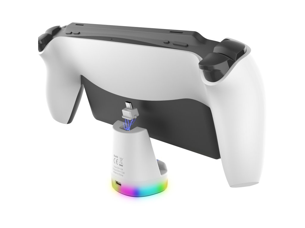 iPega P5P25 Mini magnetický nabíjecí stojan s RGB podsvícením určený pro Playstation Portal Remote Player.Nabíjení je jednoduché a pohodlné díky odnímatelnému magnetickému USB-C adaptéru, který pouze zasunete do zařízení a nasadíte zpět na stojan.