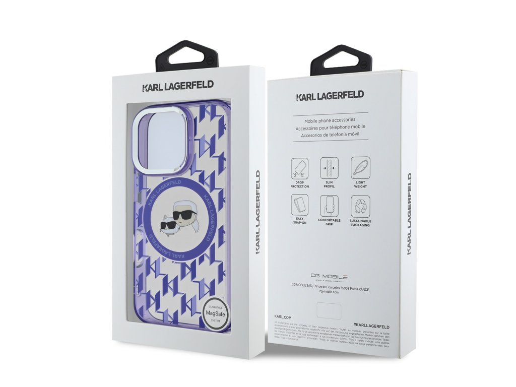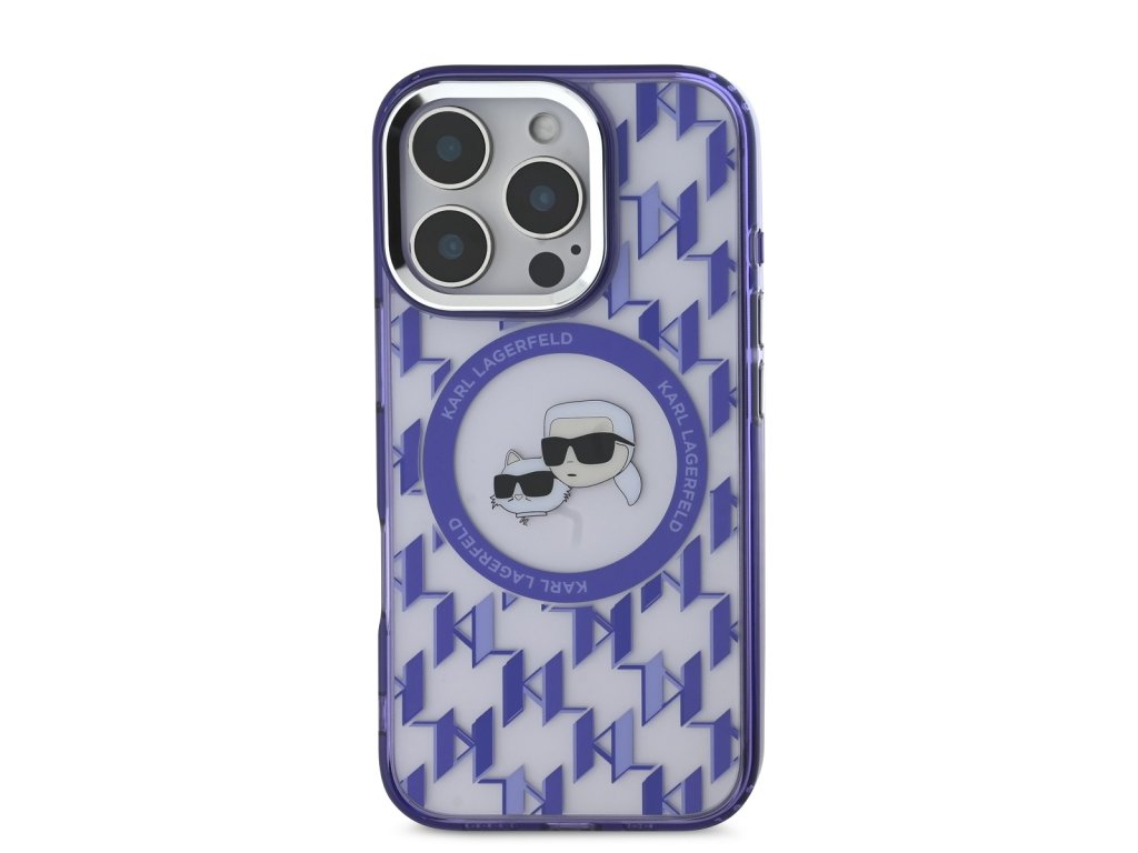 Karl Lagerfeld IML Monogram K&CH Heads MagSafe Zadní Kryt pro iPhone 16 Pro Max Purple