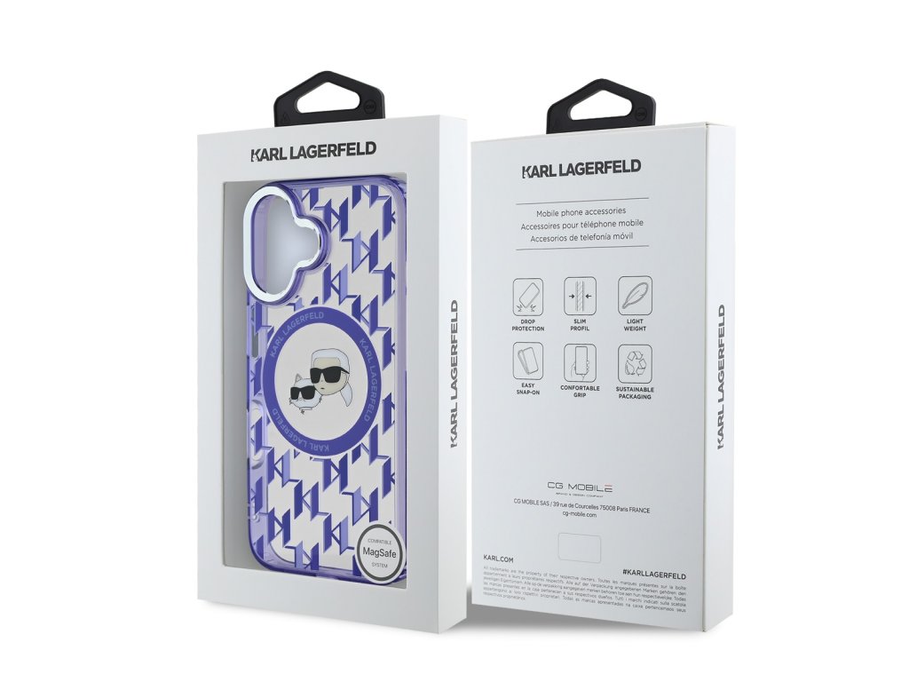 Karl Lagerfeld IML Monogram K&CH Heads MagSafe Zadní Kryt pro iPhone 16 Purple