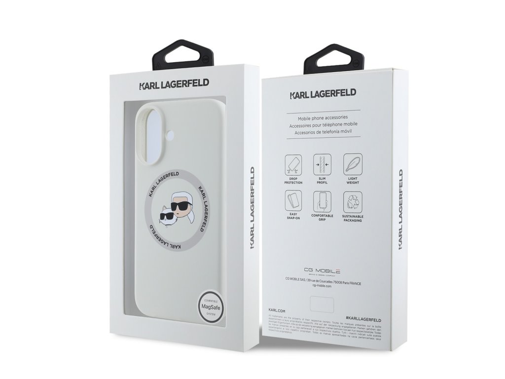 Design krytu nese ikonické vyobrazení Karla Lagerfelda a jeho kočky Choupette, což z něj činí nejen praktický, ale i stylový doplněk, který skvěle doplní váš outfit.