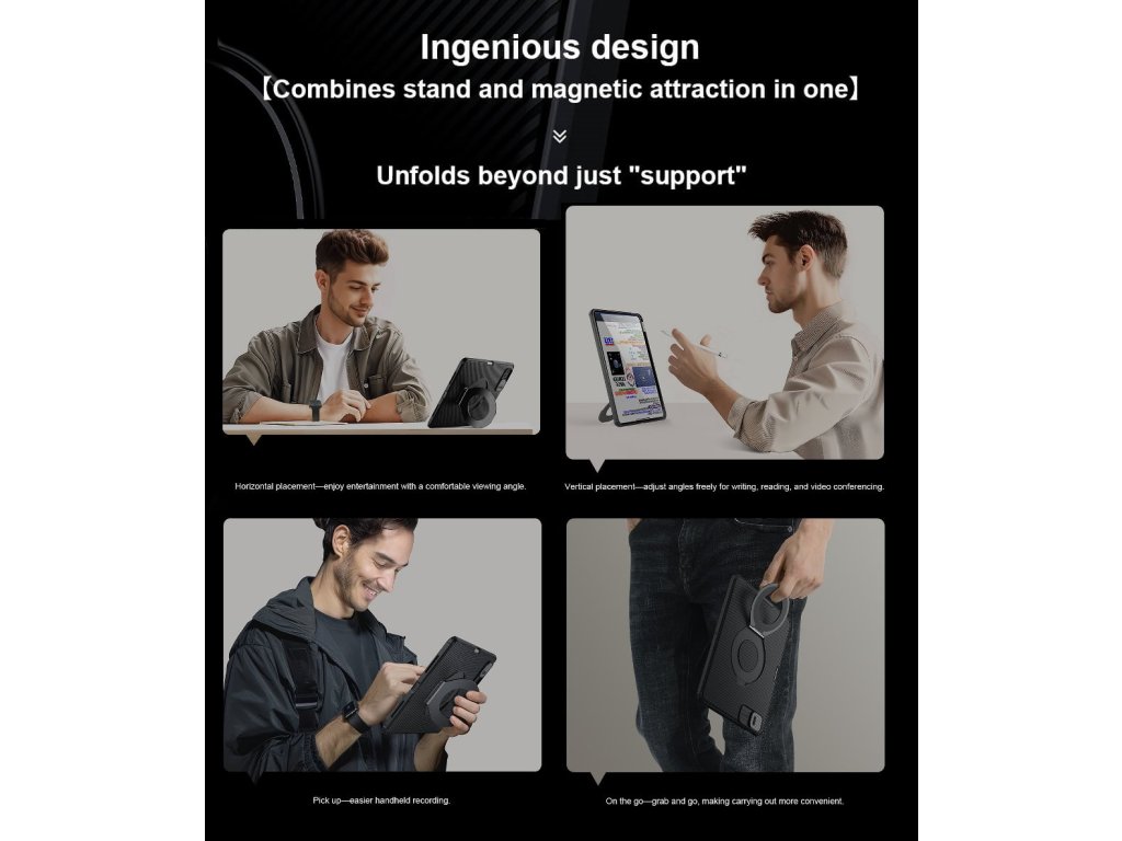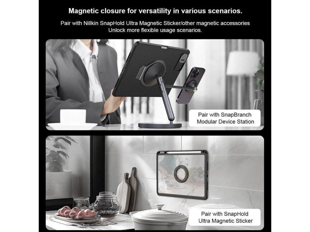 Díky magnetické funkci lze snadno připevnit k dalším magnetickým povrchům nebo příslušenství, což přináší maximální flexibilitu při používání.