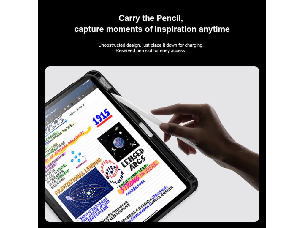 Kryt má také vyhrazený slot na stylus, který vám zajistí, že ho budete mít vždy po ruce a můžete okamžitě zaznamenat každý moment inspirace.