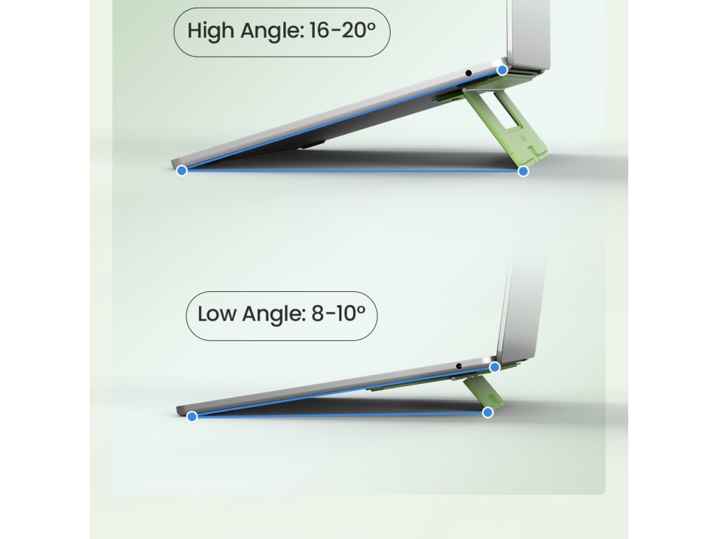 DualWing stojan nabízí dvě nastavitelné výšky a úhly, které lze přizpůsobit různým pracovním podmínkám.