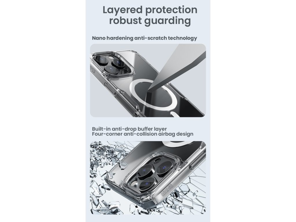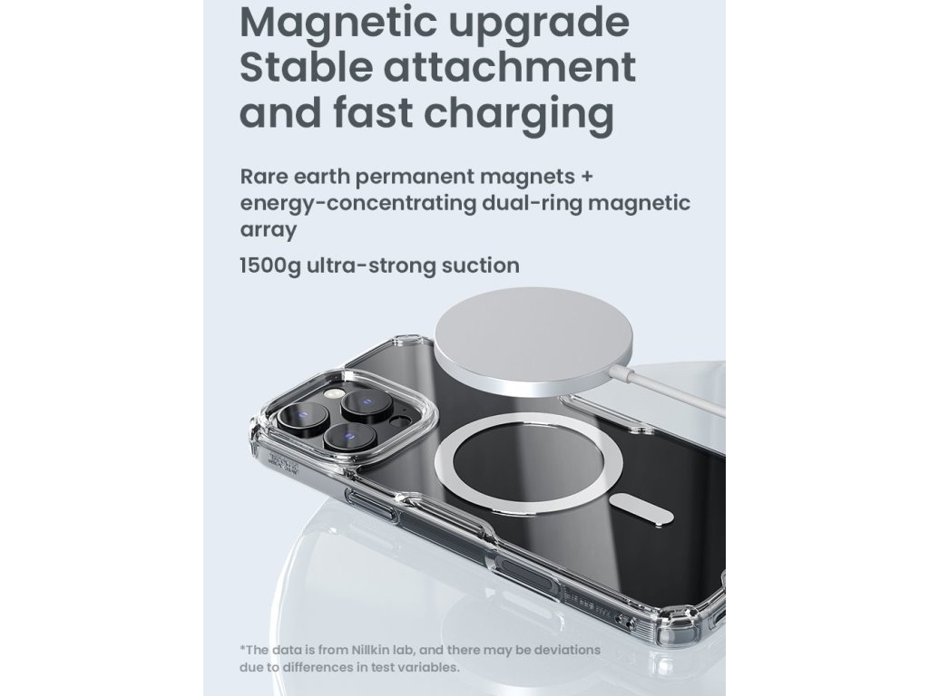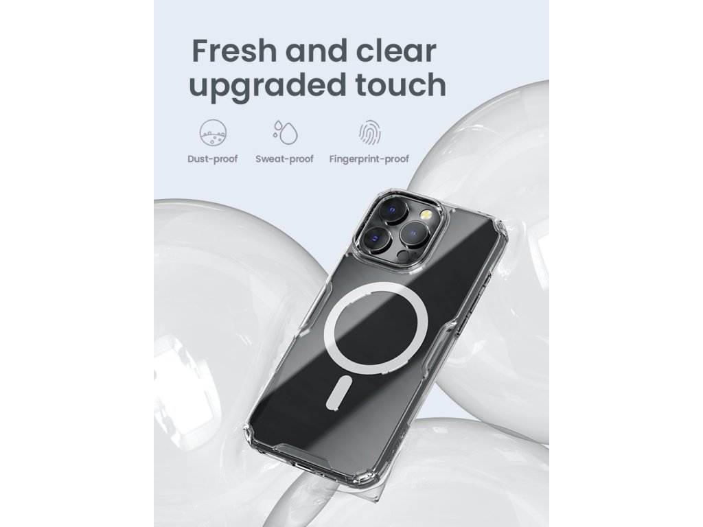 Nillkin Nature TPU PRO Magnetic ochranný kryt telefonu s integrovaným magnetem pro Apple MagSafe příslušenství.Kryt je oproti klasickému Nature TPU vybaven magnetem a je vyrobený z kombinace dvou materiálů PC/TPU.