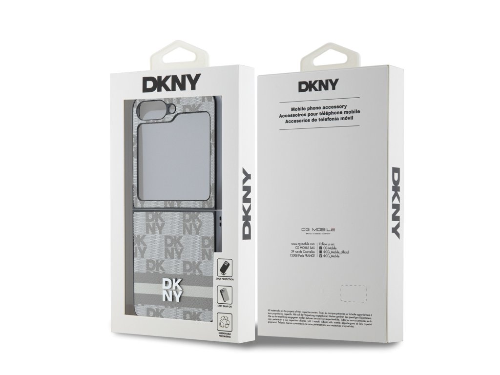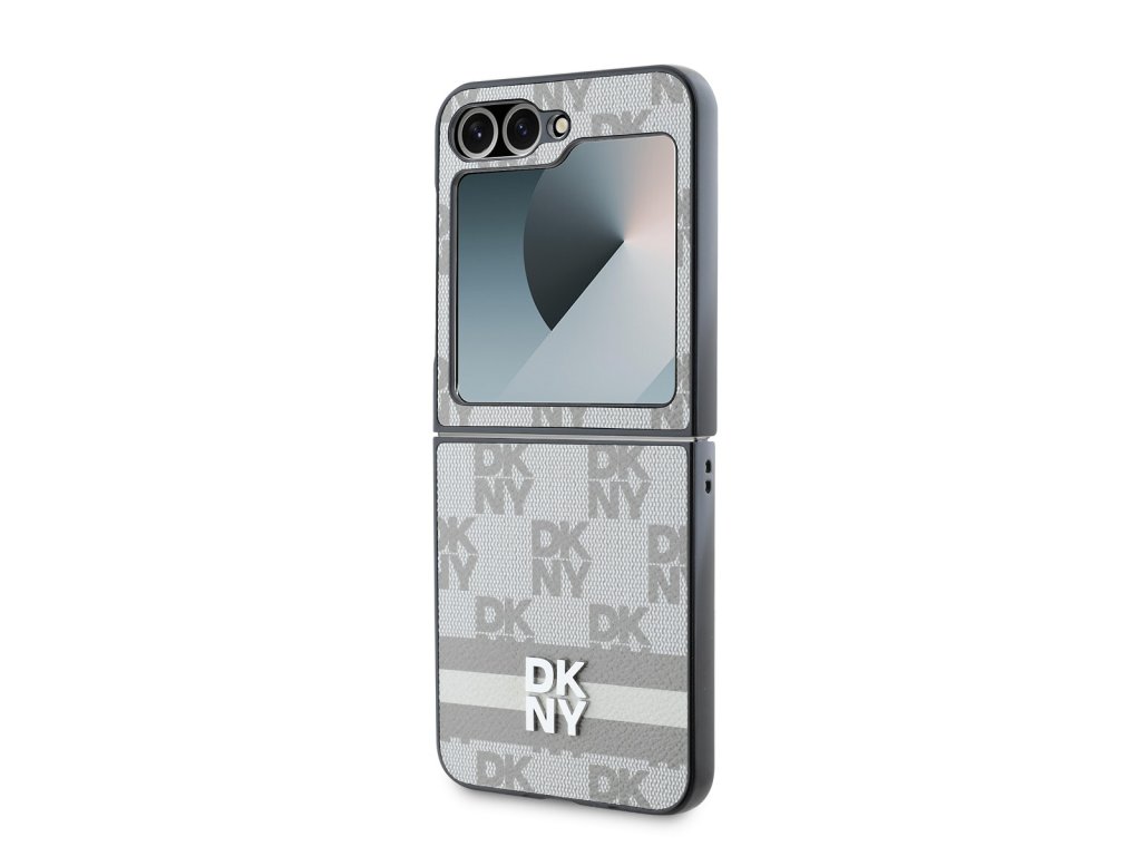 DKNY PU Leather Checkered Pattern and Stripe Zadní Kryt pro Samsung Galaxy Z Flip 6/7 FE Beige