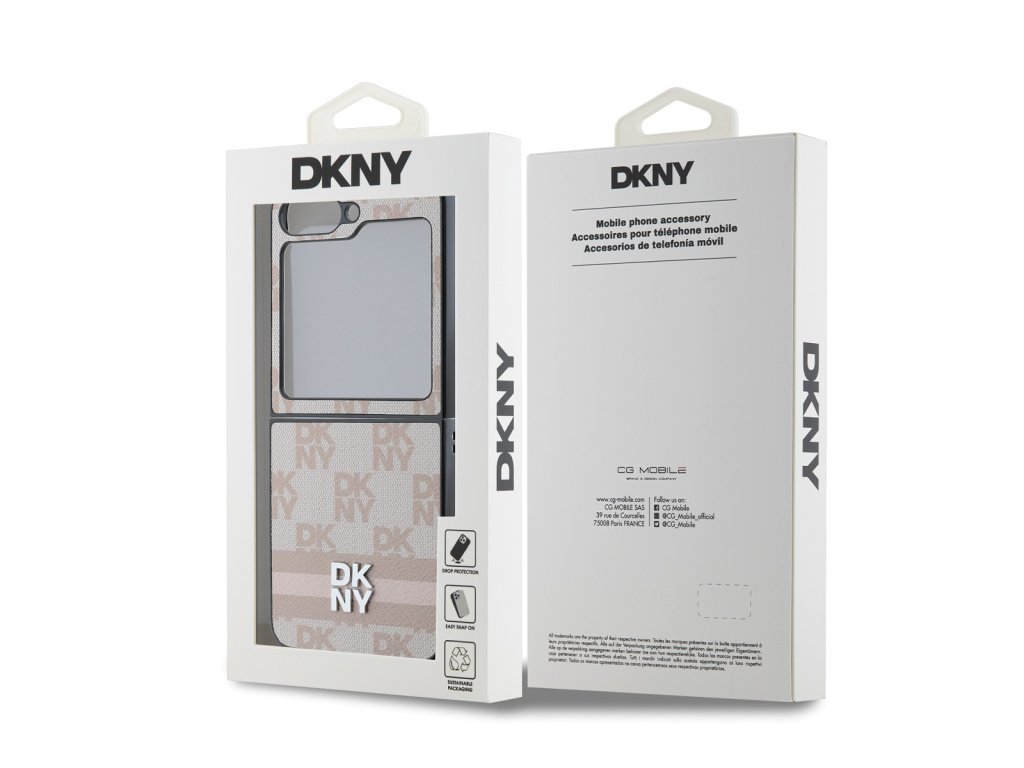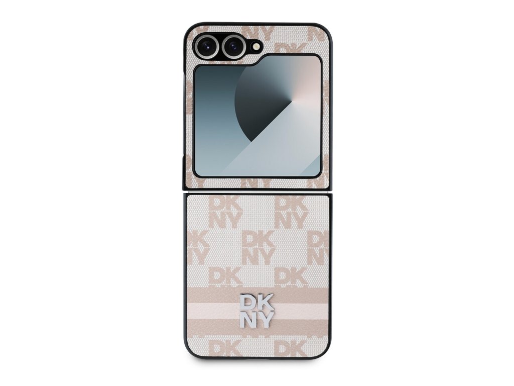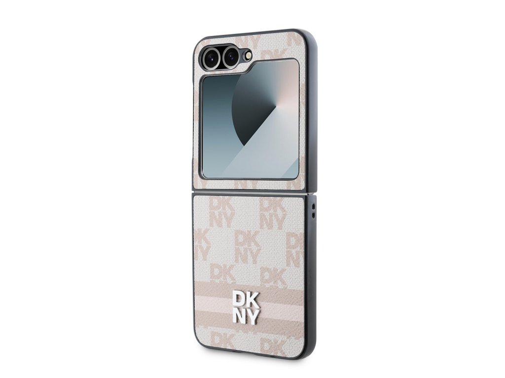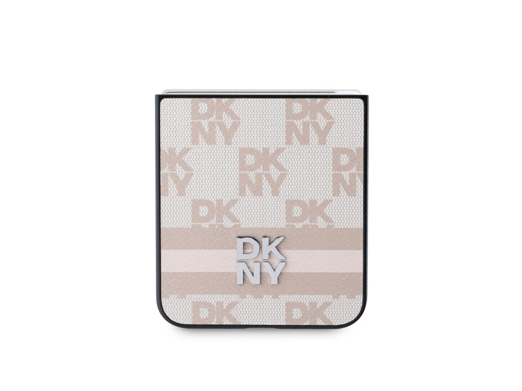 DKNY PU Leather Checkered Pattern and Stripe Zadní Kryt pro Samsung Galaxy Z Flip 6/7 FE Pink