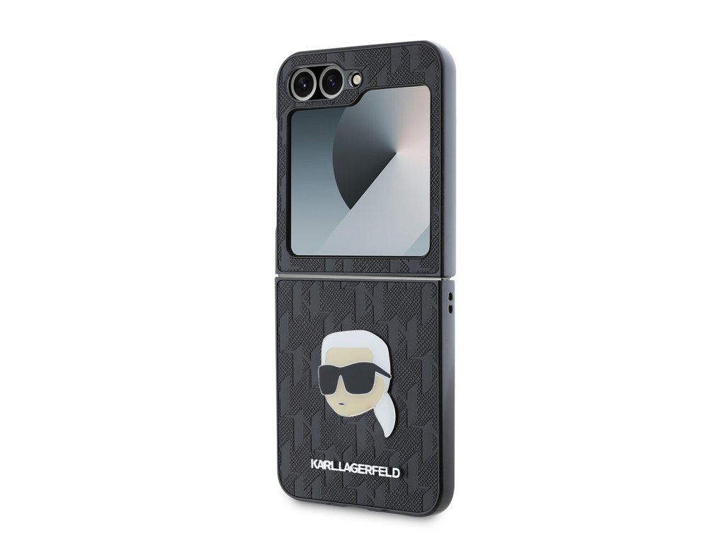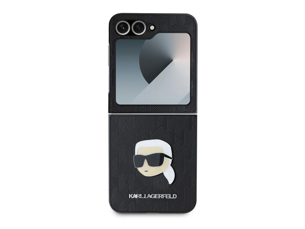 Karl Lagerfeld PU Saffiano Monogram Karl Head Zadní Kryt pro Samsung Galaxy Z Flip 6/7 FE Black