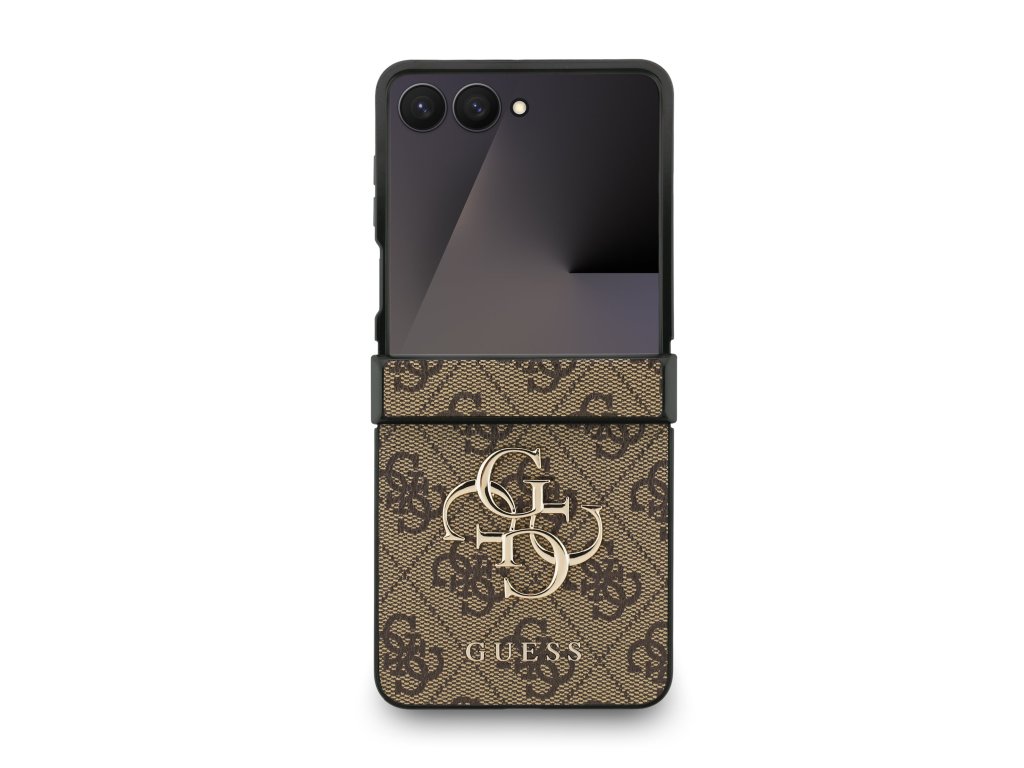 Guess PU 4G Metal Logo Zadní Kryt pro Samsung Galaxy Z Flip 7 Brown