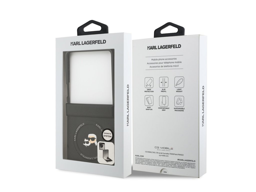 Karl Lagerfeld Grained PU Karl and Choupette Heads Magnetic zadní kryt je dokonalý doplněk pro váš telefon i outfit, který kombinuje funkčnost a styl v jednom.Je vyrobený z lehkého a odolného PU s texturou zrnité kůže a nabízí skvělou ochranu a pohodlí při používání.