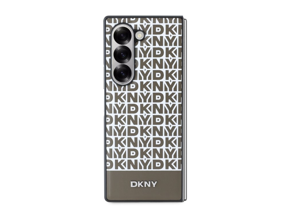 DKNY PU Leather Repeat Pattern Bottom Stripe MagSafe Zadní Kryt pro Samsung Galaxy Z Fold 6 Brown