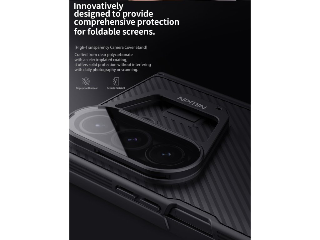 Nillkin CamShield Prop je unikátní zadní kryt s výklopným krytem čočky fotoaparátu.Záda krytu jsou vyrobena z pevného a odolného plastu.