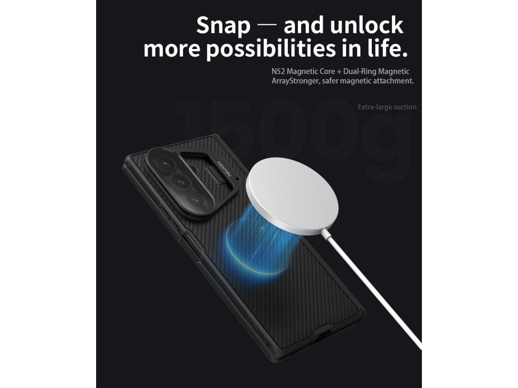 Nillkin CamShield Prop Magnetic je unikátní zadní kryt s výklopným krytem čočky fotoaparátu a integrovaným magnetem.Záda krytu jsou vyrobena z pevného a odolného plastu jehož součástí je i magnet.