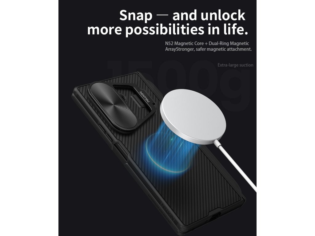 Nillkin CamShield Prop Magnetic je unikátní zadní kryt s výklopným krytem čočky fotoaparátu a integrovaným magnetem.Záda krytu jsou vyrobena z pevného a odolného plastu jehož součástí je i magnet.