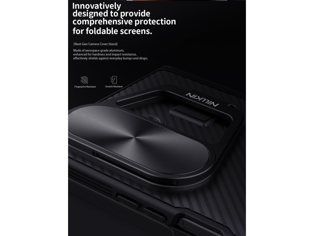 Nillkin CamShield Prop je unikátní zadní kryt s výklopným krytem čočky fotoaparátu.Záda krytu jsou vyrobena z pevného a odolného plastu.