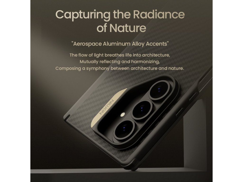 Zadní ochranný kryt s integrovaným magnetem Synthetic Fiber PRO Magnetic od značky Nillkin.Jedná se o ochranný kryt s povrchovou úpravou z aramidových vláken na zadní straně, TPU měkkého plastu na bocích a integrovaným magnetem.